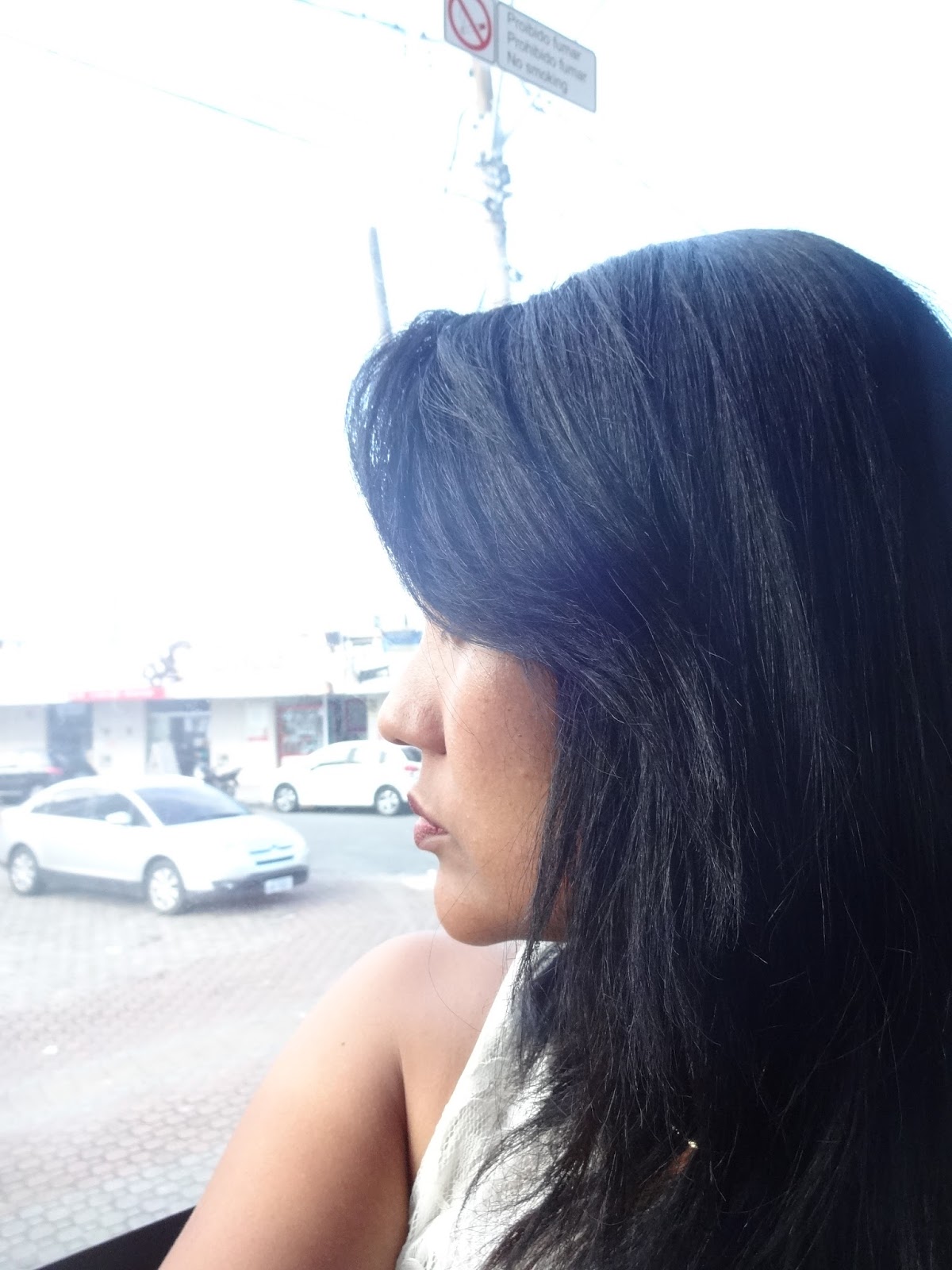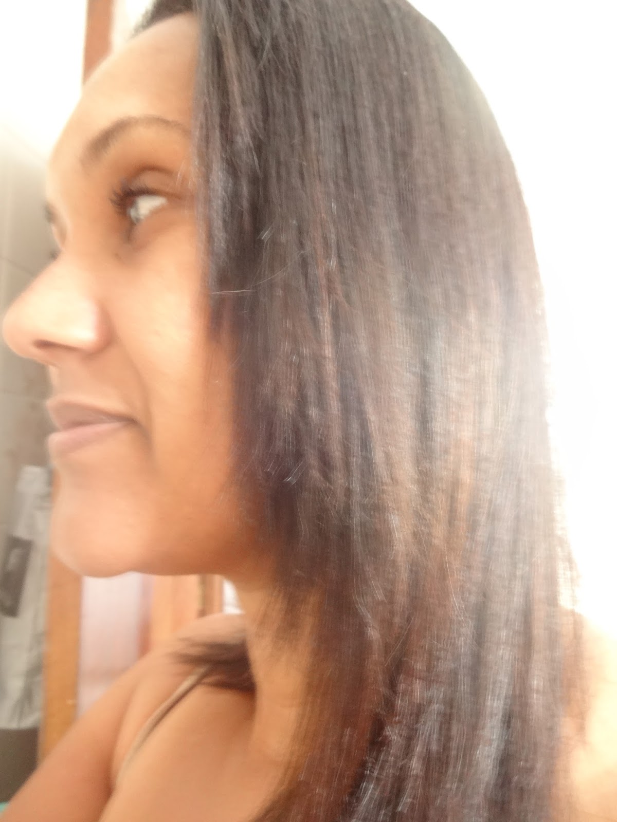 Depois…. Como escolhi a cor castanho escuro da linha Avora Esplendore, os fios ficaram quase pretos. Eu amei o resultado!!!! A cor ficou intensa e brilhante. Nesse dia eu tinha modelado os fios, mas, no fim do dia, quando lembrei de fotografar, só restaram pontas, rsrsrs. Foca na cor!!!!!
