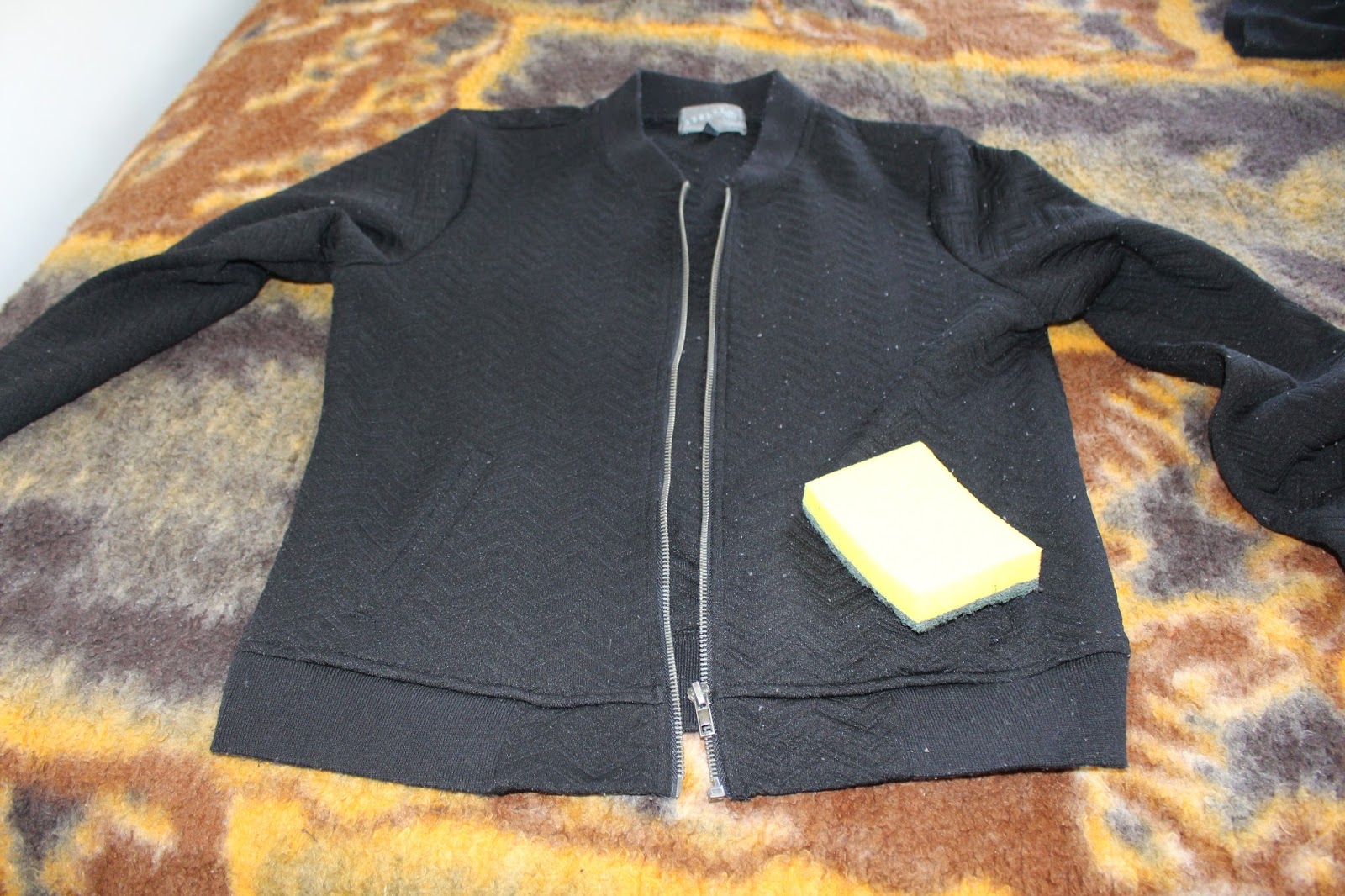 Do lado esquerdo da foto, o processo já foi concluído. Obsrve a diferença dos lados. Realmente funciona!! Esponja de cozinha para tirar bolinhas das roupas, está aprovado. Diz aí se não é a solução para os seus problemas? Simples, fácil e eficaz.