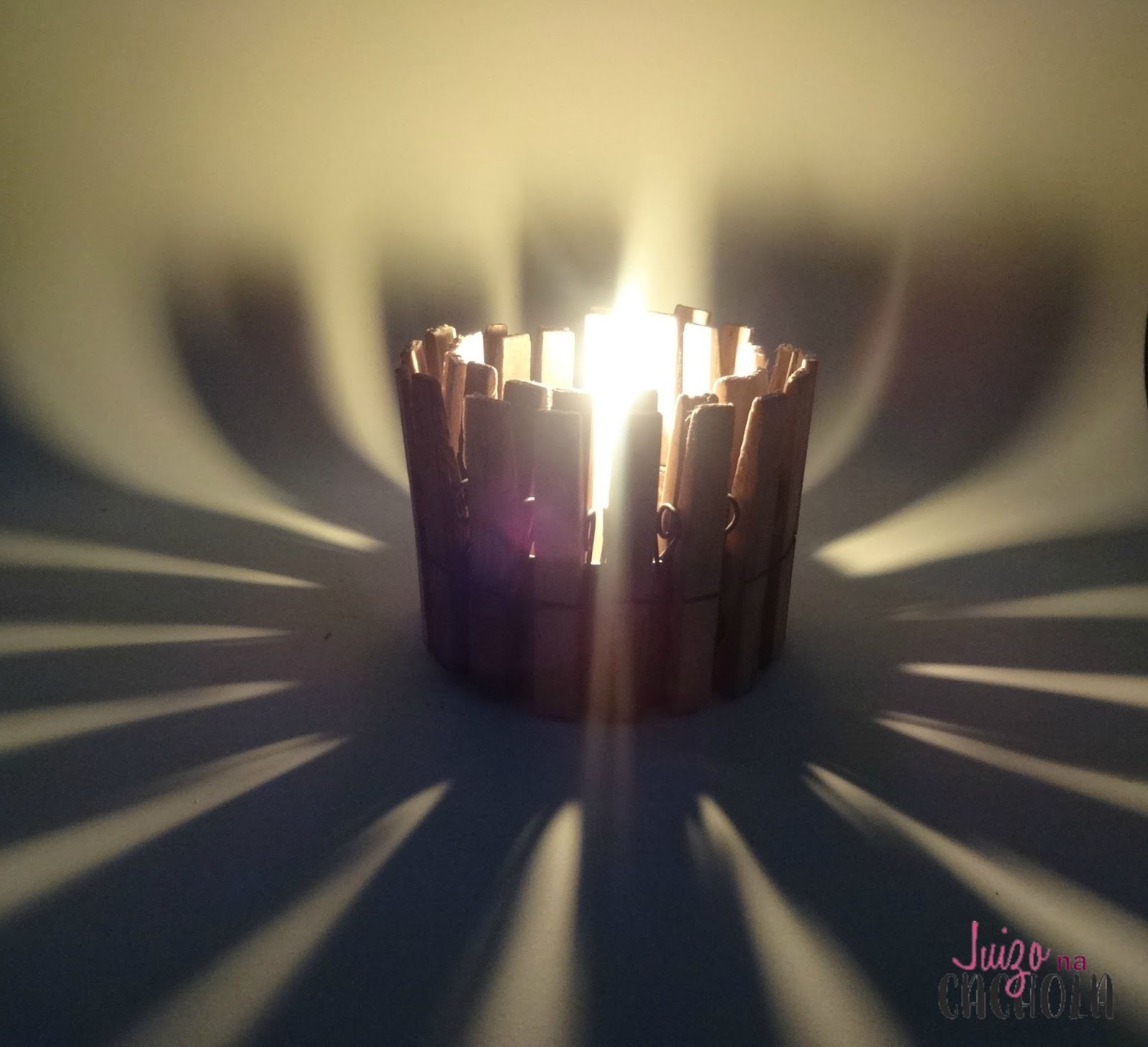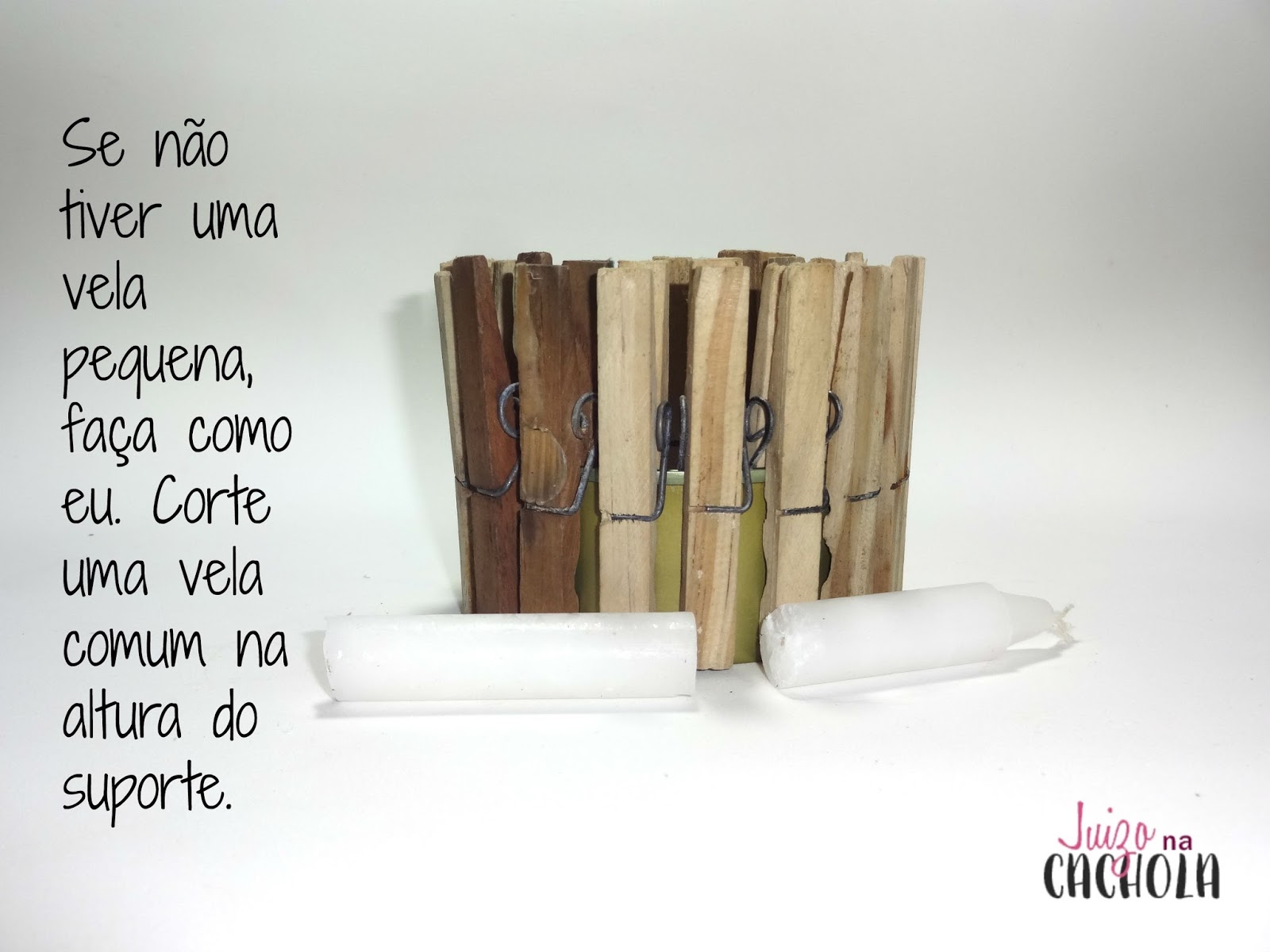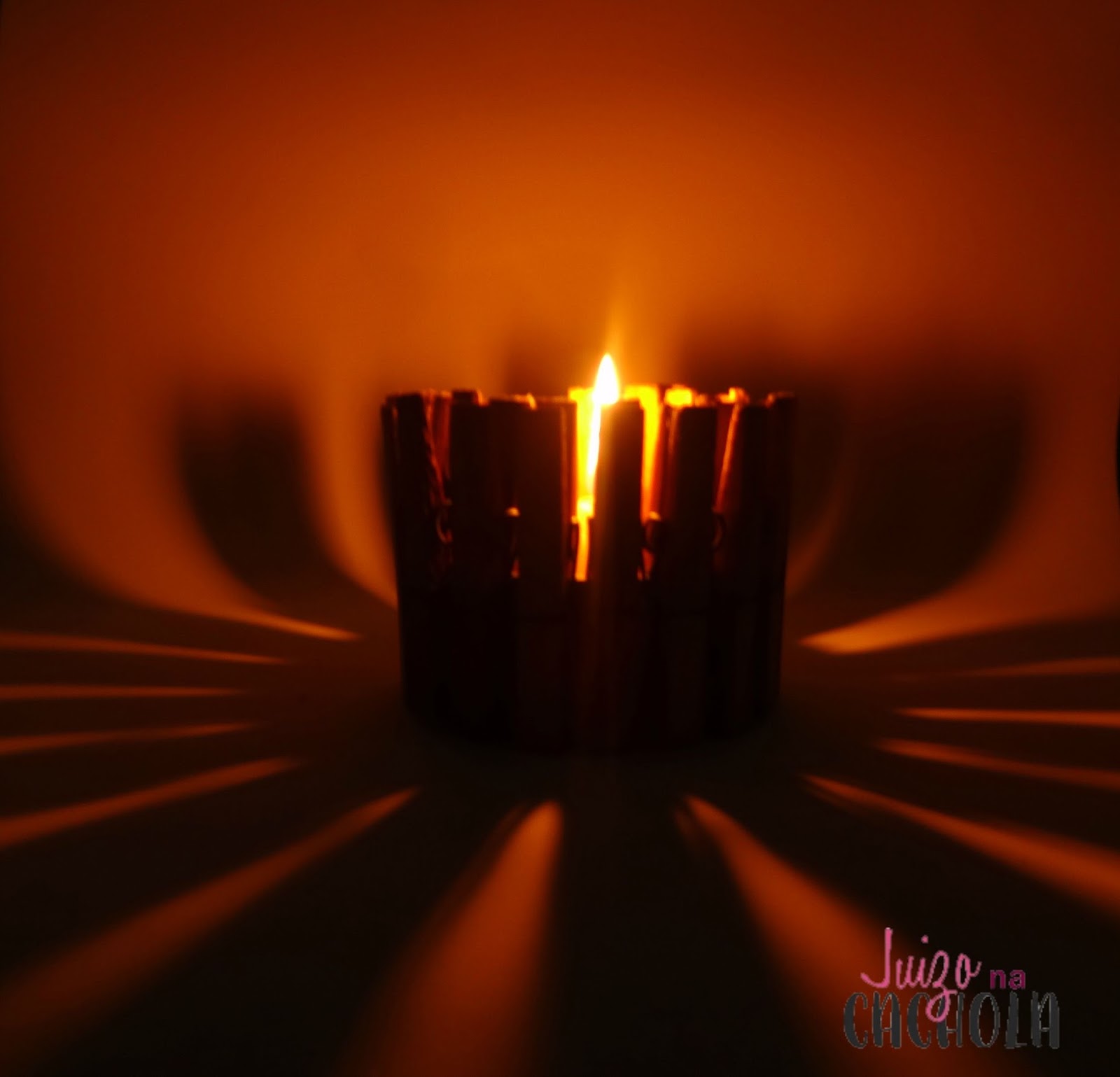 Agora coloque a vela dentro do suporte e acenda. Olha a dica para quem só tem velas comuns…