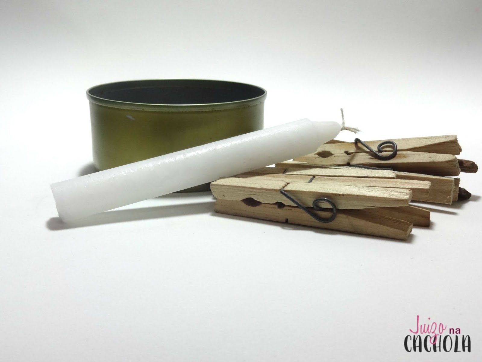 Mais uma ideia simples, que vai fazer a diferença no jantar ou na reunião com as amigas. E o melhor, não vai custar nada porque com certeza você tem todos os materiais na sua casa. Vamos precisar de: Uma latinha de atum redonda, uma vela pequena ou grande ( daí faremos um truque) e pregadores de madeira.