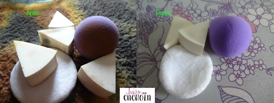 Uma dica: não espere a esponja ficar muito suja para fazer a higienização. O acúmulo de produto nas esponjinhas podem contaminar a sua pele. Como assim? Nossa pele tem gordura, por mais limpa que esteja. Daí, você “esfrega” a esponja no produto e leva para o rosto. As bactérias se proliferam na esponja e no dia seguinte você passa a esponjinha no produto, levando as bactérias e torna a passar no rosto…. Xi… isso não é nada bom….Então não esqueça, limpe seus ítens de maquiagem com frequência! Ah, na segunda foto está faltando duas esponjinhas. Eu usei antes de fotografar, rsrsr. Acontece vai…. Espero que tenham gostado do post, de como lavar esponjinhas de maquiagem.