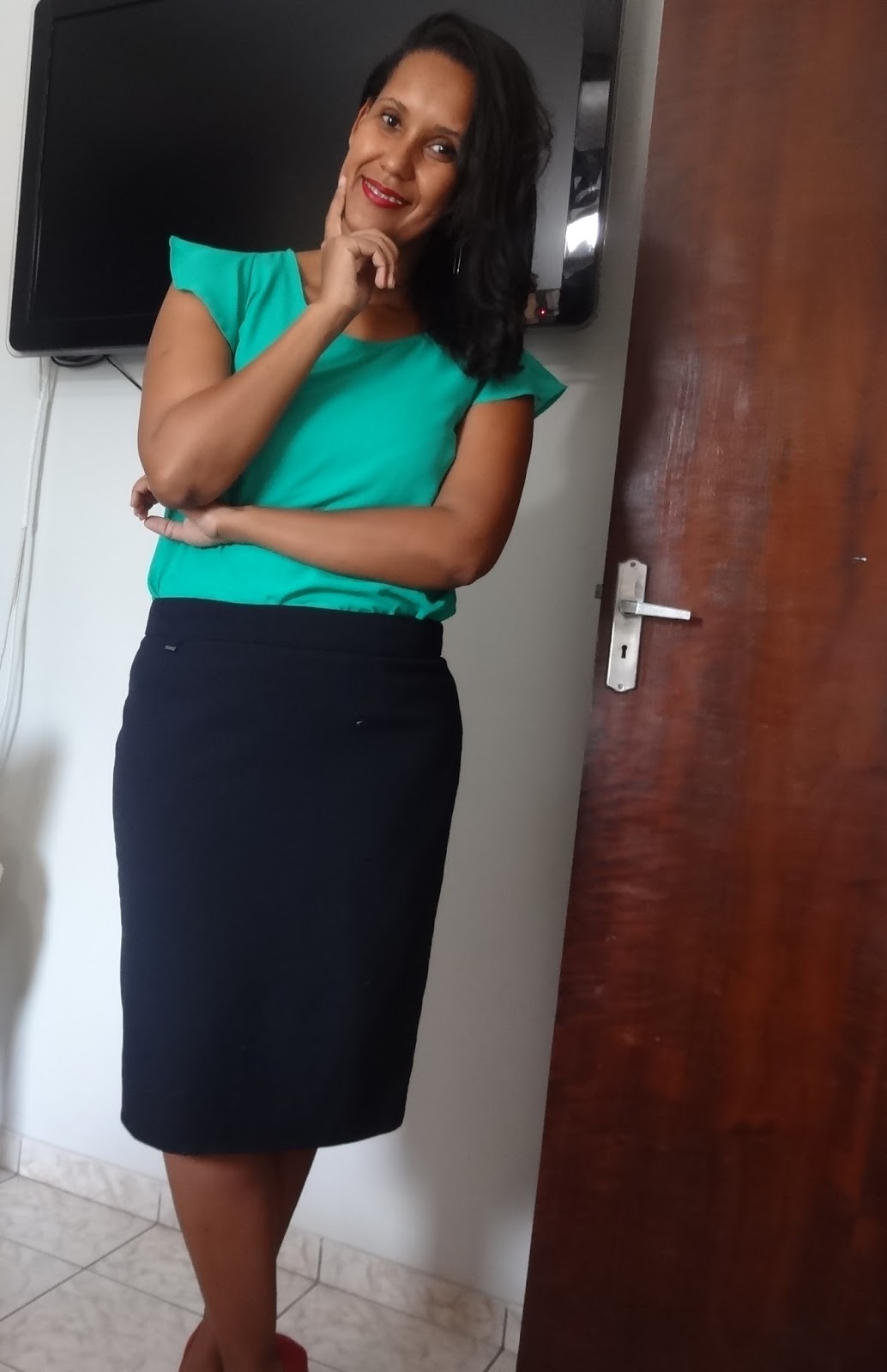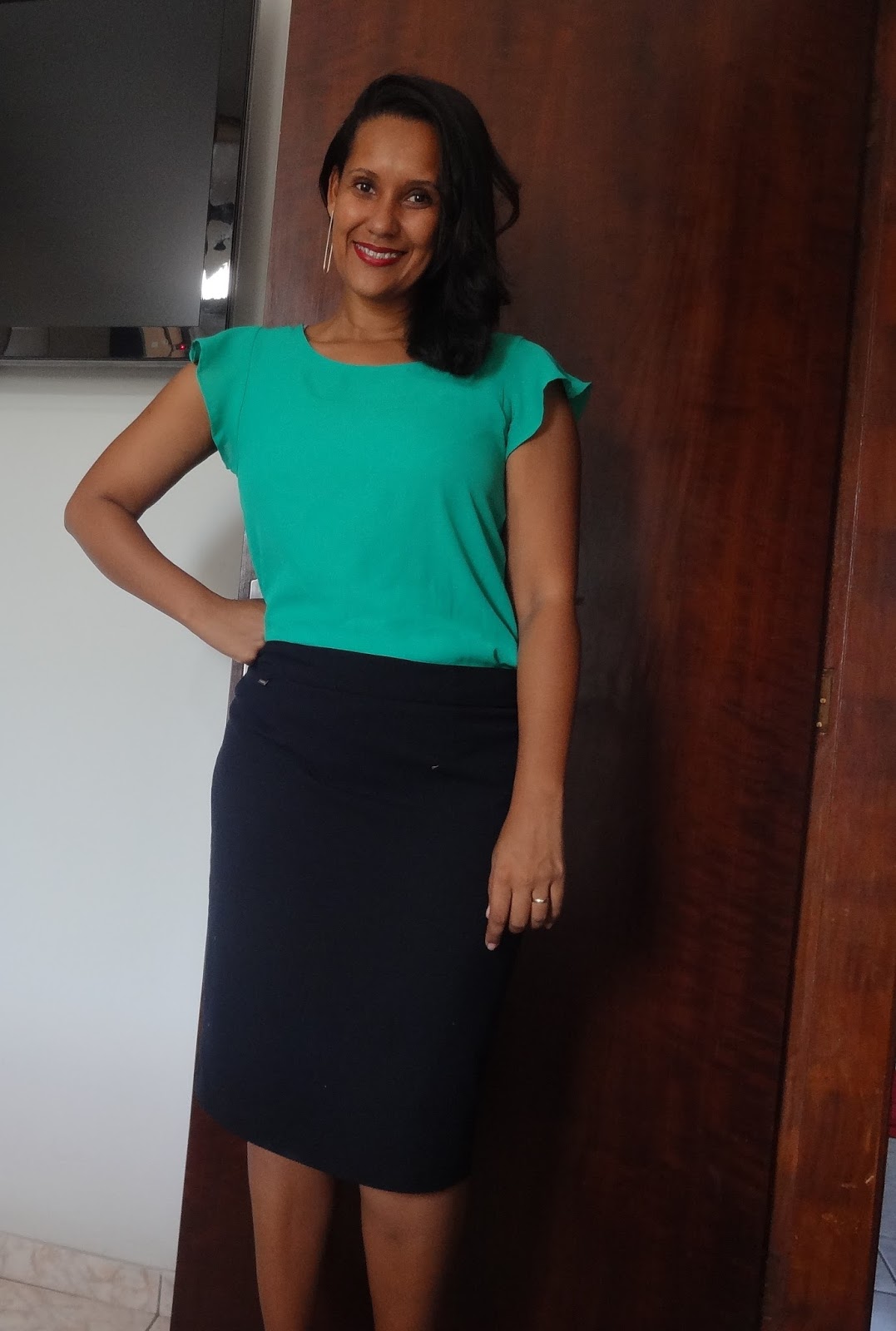 Desafio Fashion – Look saia reta e blusa verde