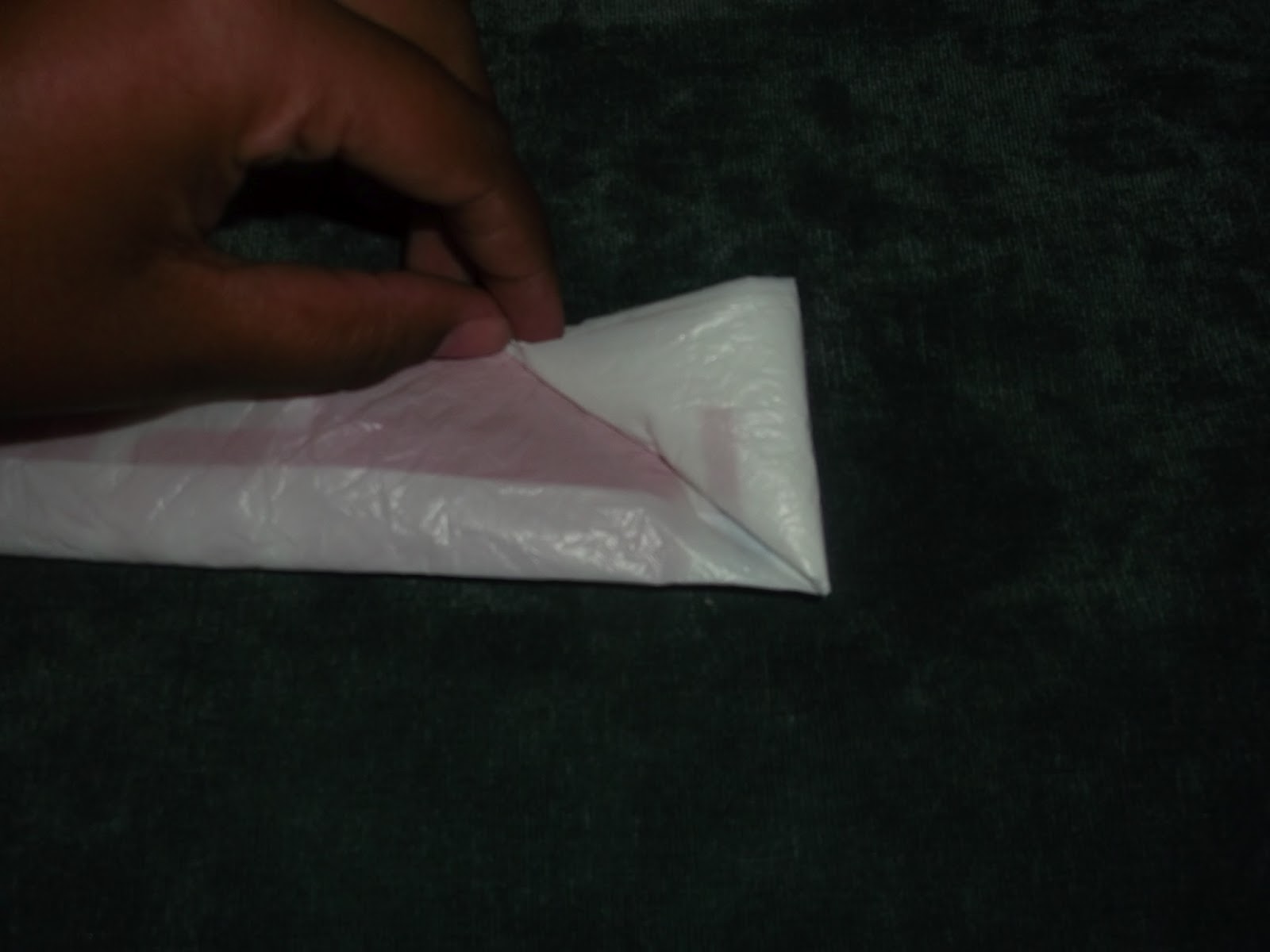 Faça um triângulo começando pelo fundo da sacolinha.