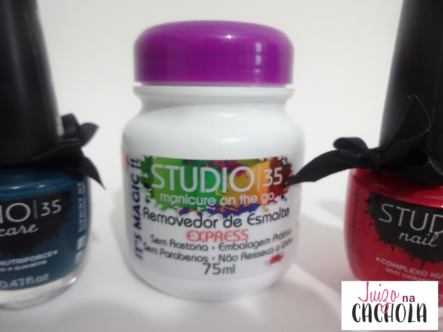 Muito fácil néan? Eu amei. Não tem cheiro forte, retira o esmalte perfeitamente, inclusive dos cantinhos. Vou confessar pra vocês, limpa os cantinhos melhor que algodão. E sabe quando você precisa limpar apenas uma unha? Com algodão, a acetona termina vazando para as outras unhas, e acabando com todo seu trabalho, mas com esse removedor… seus problemas acabaram!! Simplesmente, excelente!!! É a Studio 35 salvando a vida do povo! E você? Gostaram, já conheciam, qual a opinião de vocês sobre o produto? Quero saber a opinião de vocês.